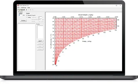 Programmet har ingen restriktioner eller foruddefinerede processer, så det er op til dig at afgøre, hvilken proces der er fysisk mulig. Programmet er derfor beregnet til personer, der allerede har erfaring med Mollier-diagrammet.
